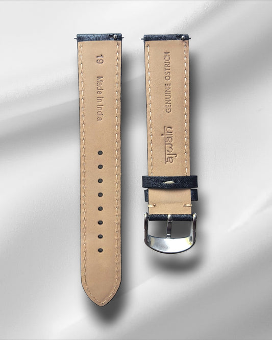 Black Ostrich Leather Strap with Off-White Stitch and Quick Release Spring Bars