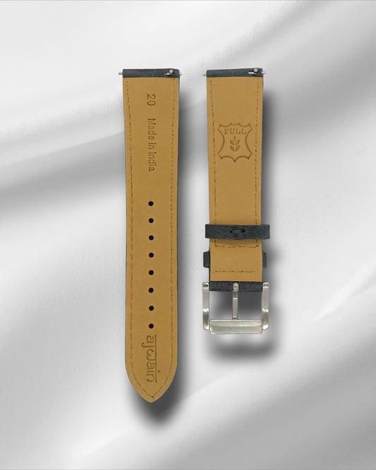 Matt Bull, Black Italian Leather with yellow stitching and quick-release spring bars