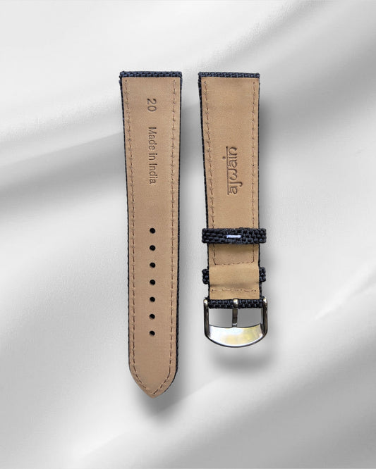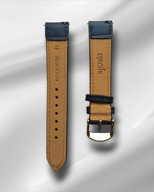 Navy Blue Cordura Watch Strap with Brown Leather Accents and Quick Release Spring Bars