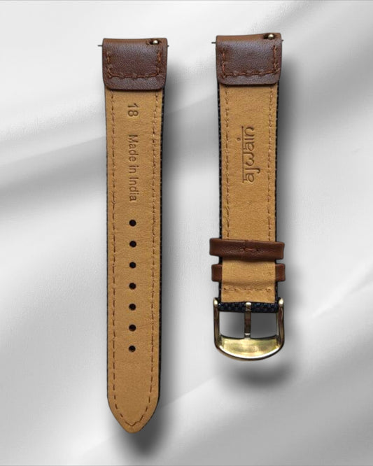 Ajwain Teak Brown, racer watch strap in genuine Italian full grain leather
