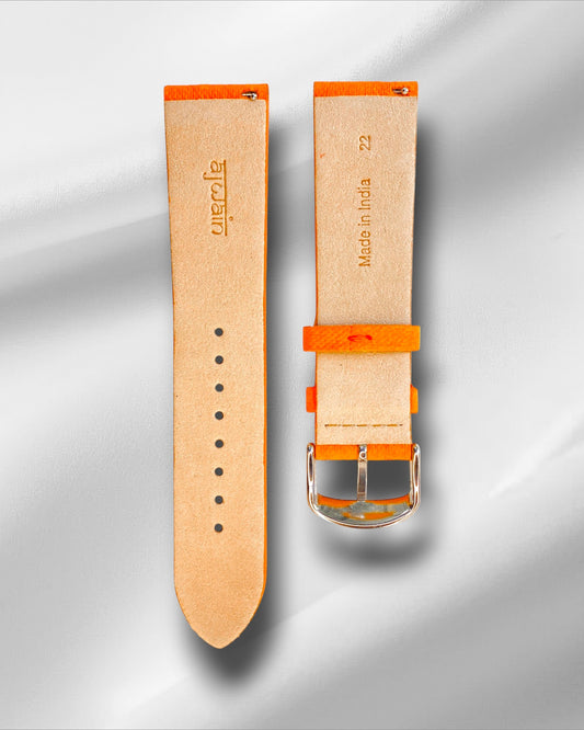 Ajwain ORANGE GENUINE OSTRICH LEATHER STRAP with nodules.