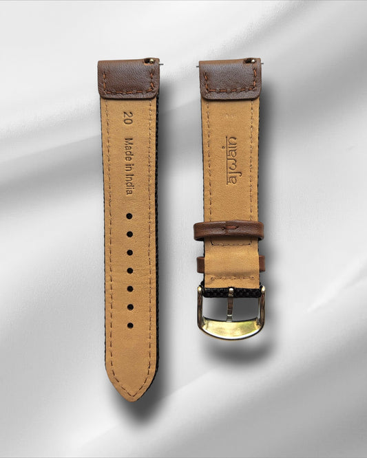 Black Cordura Strap with Brown Leather Accents and Quick Release Spring Bars