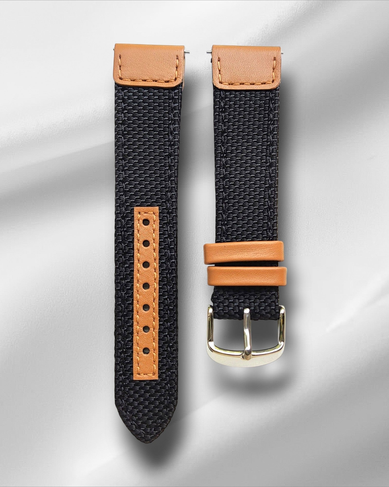 | Description | Black Cordura watch Strap with light Tan leather accents and quick-release spring bars. |